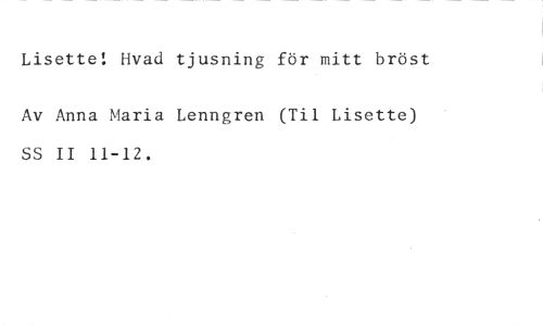 Lisette! livad tjusning för mitt bröst //// Av Anna Maria Lenngren (Til Lisette) SS II 11-12.