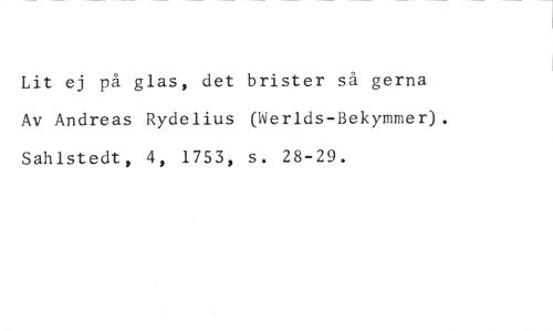 Lit ej på glas, det brister så gerna Av Andreas Rydelius (Werlds-Bekymmer). Sahlstedt, 4, 1753, s. 28-29.