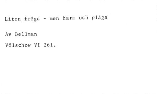 Liten frögd - men harm och plåga //// Av Bellman //// Völschow VI 261.