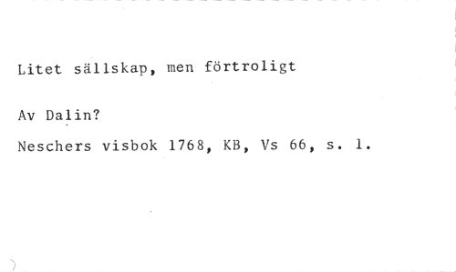 Litet sällskap, men förtroligt //// Av Dalin? //// Neschers visbok 1768, KB, Vs 66, s. 1.