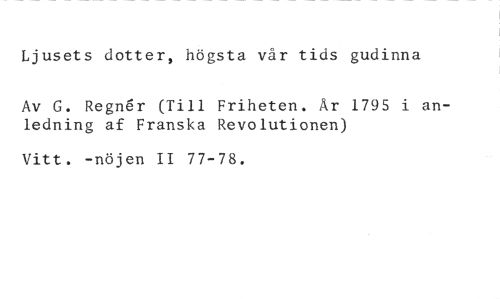 Ljusets dotter, högsta vår tids gudinna //// Av G. Regn6r (Till Friheten. År 1795 i anledning af Franska Revolutionen) //// Vitt. -nöjen II 77-78.