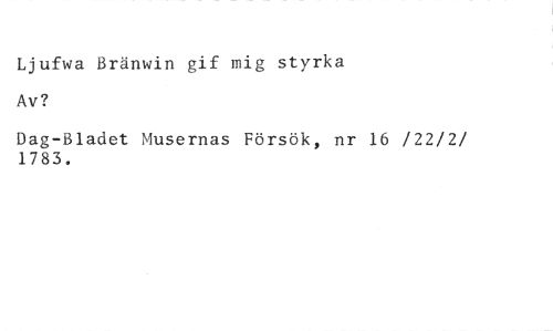 Ljufwa Bränwin gif mig styrka Av? //// Dag-Bladet Musernas Försök, nr 16 /22/2/ 1783.