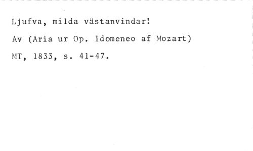 Ljufva, milda västanvindar! //// Av (Aria ur Op. Idomeneo af Mozart) MT, 1833, s. 41-47.