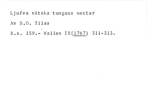 Ljufva vätska tungans nectar Av S.O. Tilas //// B.s. 159.- Wallen IX(1767) 311-313.