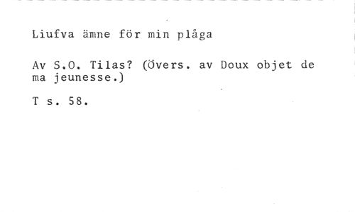 Liufva ämne för min plåga //// Av S.O. Tilas? (Övers. av Doux okjet de ma jeunesse.) //// T s. 58.