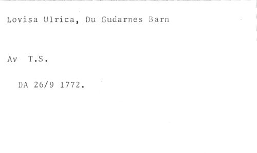 Lovisa Ulrica, Du Gudarnes Barn //// Av T.S. //// DA 26/9 1772.