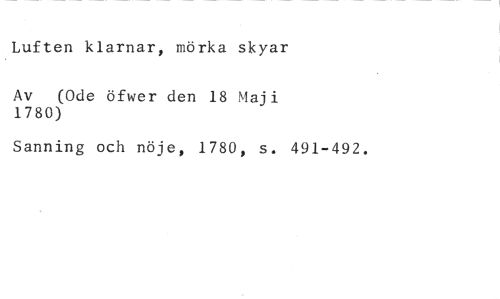 Luften klarnar, mörka skyar //// Av (Ode öfwer den 18 Maji 1780) //// Sanning och nöje, 1780, s. 491-492.