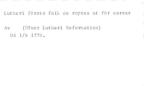 Lutheri första folk de roptes ut för narrar //// Av (Öfwer Lutheri Reformation) //// DA 1/6 1770.