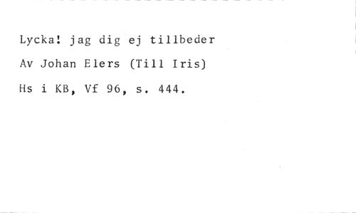Lycka: jag dig ej tillbeder Av Johan Elers (Till Iris) Hs i KB, Vf 96, s. 444.