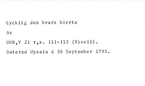 Lycklig den hvars hierta //// Av //// UUB,V 21 r,s. 151-153 (Risell). Daterad Upsala d 30 September 1793.