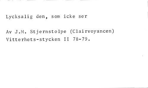 Lycksalig den, som icke ser //// Av J.M. Stjernstolpe (Clairvoyancen) Vitterhets-stycken II 78-79.