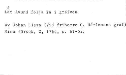 å //// Lät Avund följa in i grafven //// Av Johan Elers (Vid friherre C. Hårlemans graf) Mina försök, 2, 1756, s. 61-62.