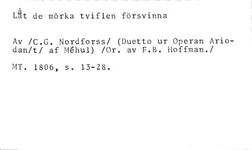 Låt de mörka tviflen försvinna //// Av /C.G. Nordforss/ (Duetto ur Operan Ariodan/t/ af M6hul) /Or. av F.B. Hoffmand //// MT. 1806, s. 13-28.