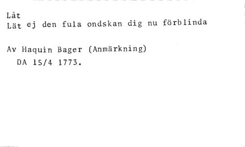 Låt //// Lät ej den fula ondskan dig nu förblinda //// Av Haquin Bager (Anmärkning) DA 15/4 1773.