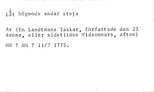 L t högmods andar stoja //// Av (En Landtmans Tankar, författade den 23 denne, eller sidstlidne Midsommars, afton) //// HN ? HN ? 11/7 1775.