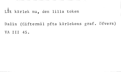 Låt kärlek nu, den lilla token //// Dalin (Giftermål pfta kärlekens graf. öfvers) VA III 45.
