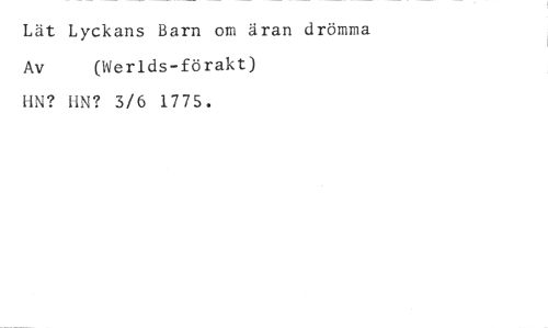 Lät Lyckans Barn om äran drömma //// Av (Werlds-förakt) //// LIN? [IN? 3/6 1775.