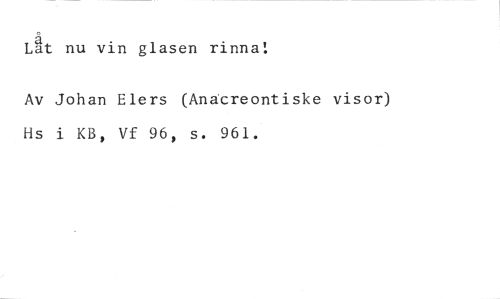 Låt nu vin glasen rinna! //// Av Johan Elers (Anacreontiske visor) Hs i KB, Vf 96, s. 961.