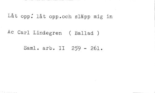 Låt opp: låt opp.och släpp mig in //// Ac Carl Lindegren ( Ballad ) Samt. arb. II 259 - 261.