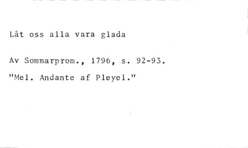 Låt oss alla vara glada //// Av Sommarprom., 1796, s. 92-93. "Mel. Andante af Pleyel."