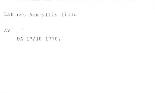 Lät oss Amaryllis lilla //// Av //// DA 17/10 1770.