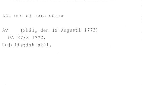 Lät oss ej mera sörja //// Av (Skål, den 19 Augusti 1772) //// DA 27/8 1772. //// Rojalistisk skål.