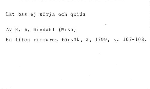 Lät oss ej sörja och ciwida //// Av E. A. Windahl (Wisa) //// En liten rimmares försök, 2, 1799, s. 107-108.