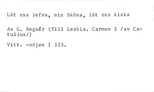 Låt oss lefva, min Sköna, låt oss älska //// Av G. Regn6r (Till Lesbia. Carmen 5 /av Ca-tullus/) //// Vitt. -nöjen I 123.