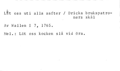 Låt oss uti alla safter / Dricka brukspatro- //// ners skäl //// Av Wallen I 7, 1765. //// Mel.: Lät oss kocken slå vid öra.