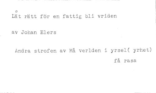 0 //// Lät rätt för en fattig bli vriden av Johan Elers //// Andra strofen av Må verlden i yrsel( yrhet) //// få rasa