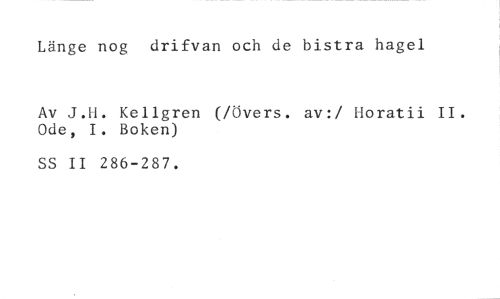 Länge nog drifvan och de bistra hagel //// Av J.H. Kellgren (/Övers. av:/ Horatii II. Ode, I. Boken) //// SS II 286-287.
