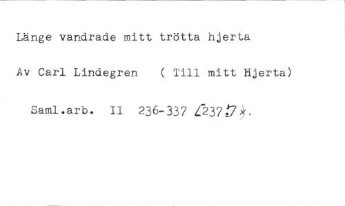 Länge vandrade mitt trötta hjerta //// Av Carl Lindegren ( Till mitt hjerta) //// Saml.arb. II 236-337 L237:7