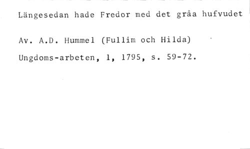 Längesedan hade Fredor med det gråa hufvudet //// Av. A.D. Hummel (Fullim och Hilda) Ungdoms-arbeten, 1, 1795, s. 59-72.