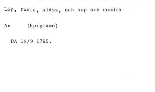 Löp, rusta, slåss, och sup och dundra //// Av (Epigrame) //// DA 18/9 1795.