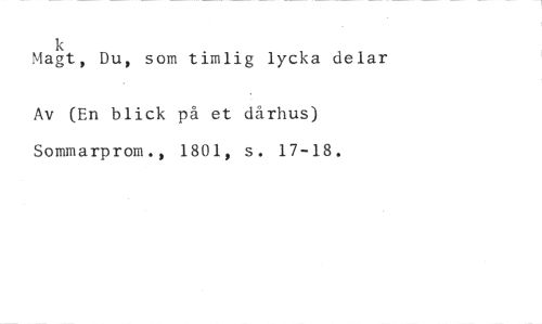 k //// Magt, Du, som timlig lycka delar //// Av (En blick på et dårhus) Sommarprom., 1801, s. 17-18.
