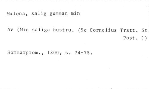Malena, salig gumman min //// Av (Min saliga hustru. (Se Cornelius Tratt. St, //// Post. )) //// Sommarprom., 1800, s. 74-75.