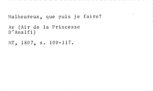 Malheureux, que puis je faire? //// Av (Air de la Princesse D'Amalfi) //// MT, 1807, s. 109-117.