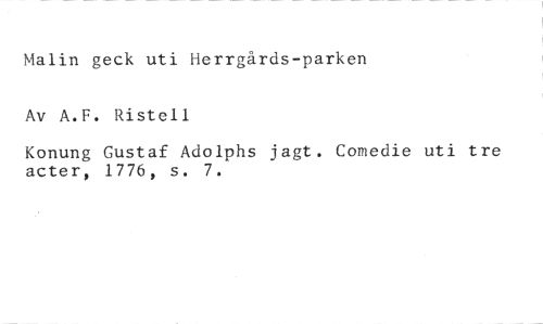 Malin geck uti Herrgårds-parken //// Av A.F. Ristell //// Konung Gustaf Adolphs jagt. Comedie uti tre acter, 1776, s. 7.
