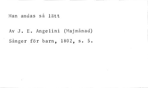 Man andas så lätt //// Av J. E. Angelini (Majmånad) Sånger för barn, 1802, s. 5.