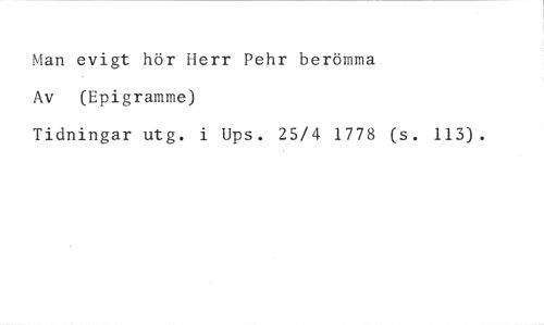 Man evigt hör Herr Pehr berömma Av (Epigramme) //// Tidningar utg. i Ups. 25/4 1778 (s. 113).