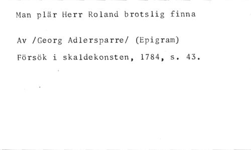 Man plär Herr Roland brotslig finna //// Av /Georg Adlersparre/ (Epigram) Försök i skaldekonsten, 1784, s. 43.