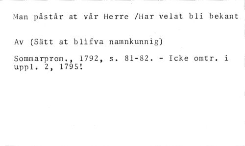 Man påstår at vår Herre /Har velat bli bekant. Av (Sätt at blifva namnkunnig) //// Sommarprom., 1792, s. 81-82. - Icke omtr. i uppi. 2, 1795!