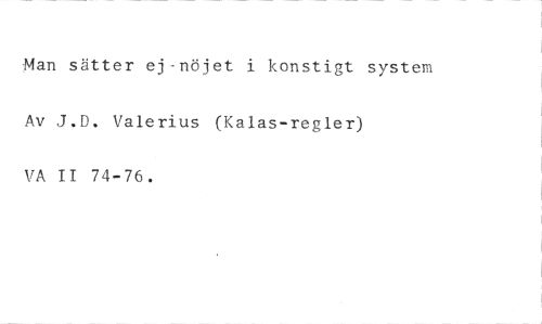 Man sätter ej-nöjet i konstigt system Av J.D. Valerius (Kalas-regler) VA II 74-76.
