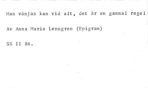 Man vänjas kan vid alt, det är en gammal regel Av Anna Maria Lenngren (Epigram) SS II 86.