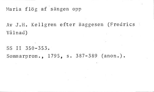 Maria flög af sängen opp //// Av J.H. Kellgren efter Baggesen (Fredrics Vålnad) //// SS II 350-353. //// Sommarprom., 1795, s. 387-389 (anon.).