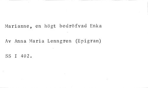 Marianne, en högt bedröfvad Enka Av Anna Maria Lenngren (Epigram) SS I 402.