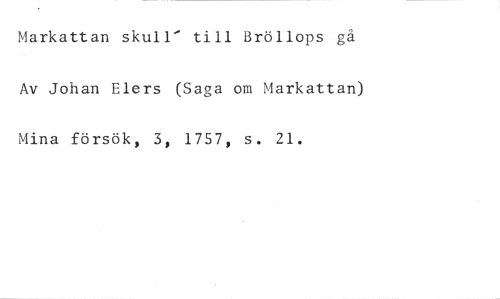 Markattan skull' till Bröllops //// Av Johan Elers (Saga om Markattan) Mina försök, 3, 1757, s. 21.