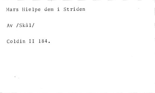 Mars Hielpe dem i Striden Av /Skål //// /Coldin II 184.