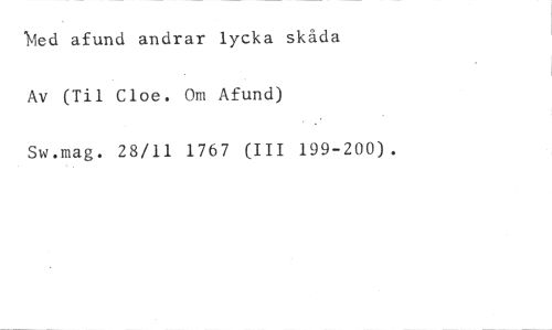 'Med afund andrar lycka skåda //// Av (Til Cloe. Om Afund) //// Sw.mag. 28/11 1767 (III 199-200).