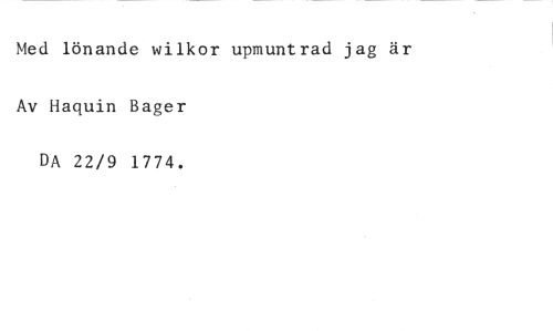 Med lönande wilkor upmuntrad jag är Av Haquin Bager //// DA 22/9 1774.